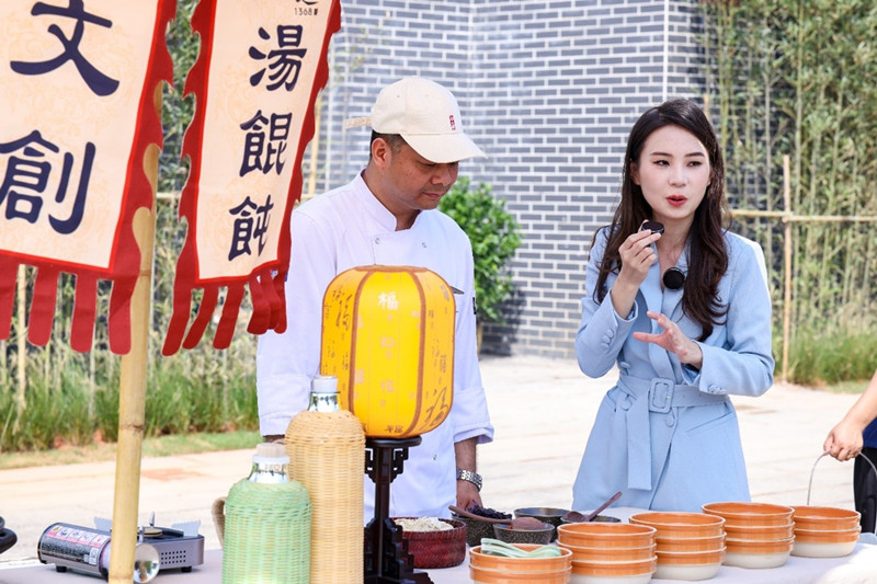 此時的山夏1368酒店熱鬧非凡,廣場慶典音樂響起,四處人頭攢動,洋溢著豐收的喜悅。各種農産品琳瑯滿目,有新鮮的蔬菜、瓜果,還有精美的農産品加工品,更有當地特色攤位可以品嘗美味的湯混沌和醬牛脯等小吃。身著傳統服飾的村民們正在舞臺上表演富有地方特色的舞獅、舞蹈和武術,歡快的旋律吸引了村民們圍觀拍攝、打卡。