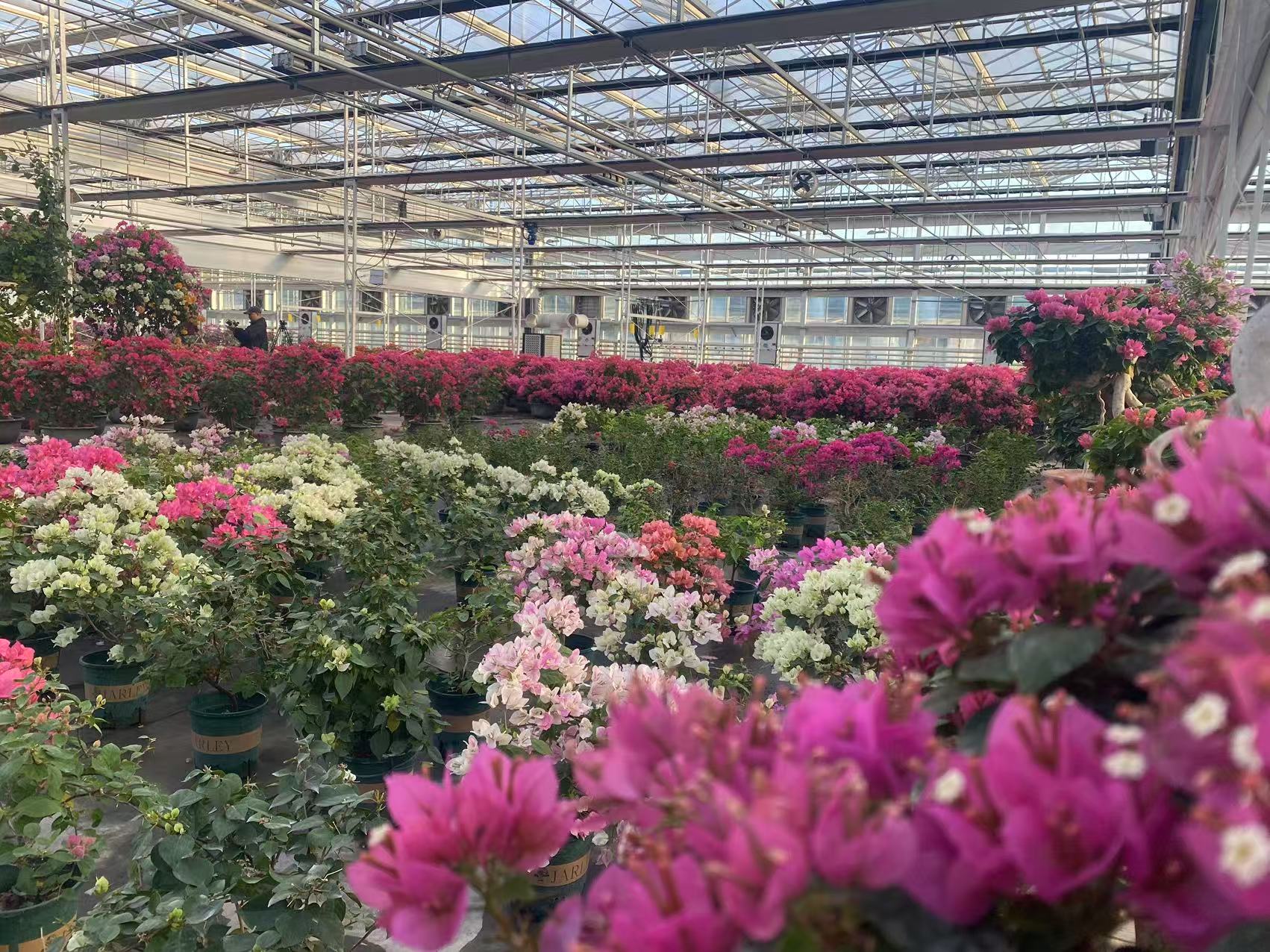 近年來,北郎中花卉基地與市農林科學院合作,不斷推進技術優化升級。通過花期調控、水肥管理等技術,培育出了適應北方氣候的本土三角梅品種。如今,北郎中村花木中心已成為全市品種最全、面積最大的三角梅種植基地,另外,作為北京市重要的蝴蝶蘭生産區,這裡的蝴蝶蘭産量也在全市佔據重要份額。
