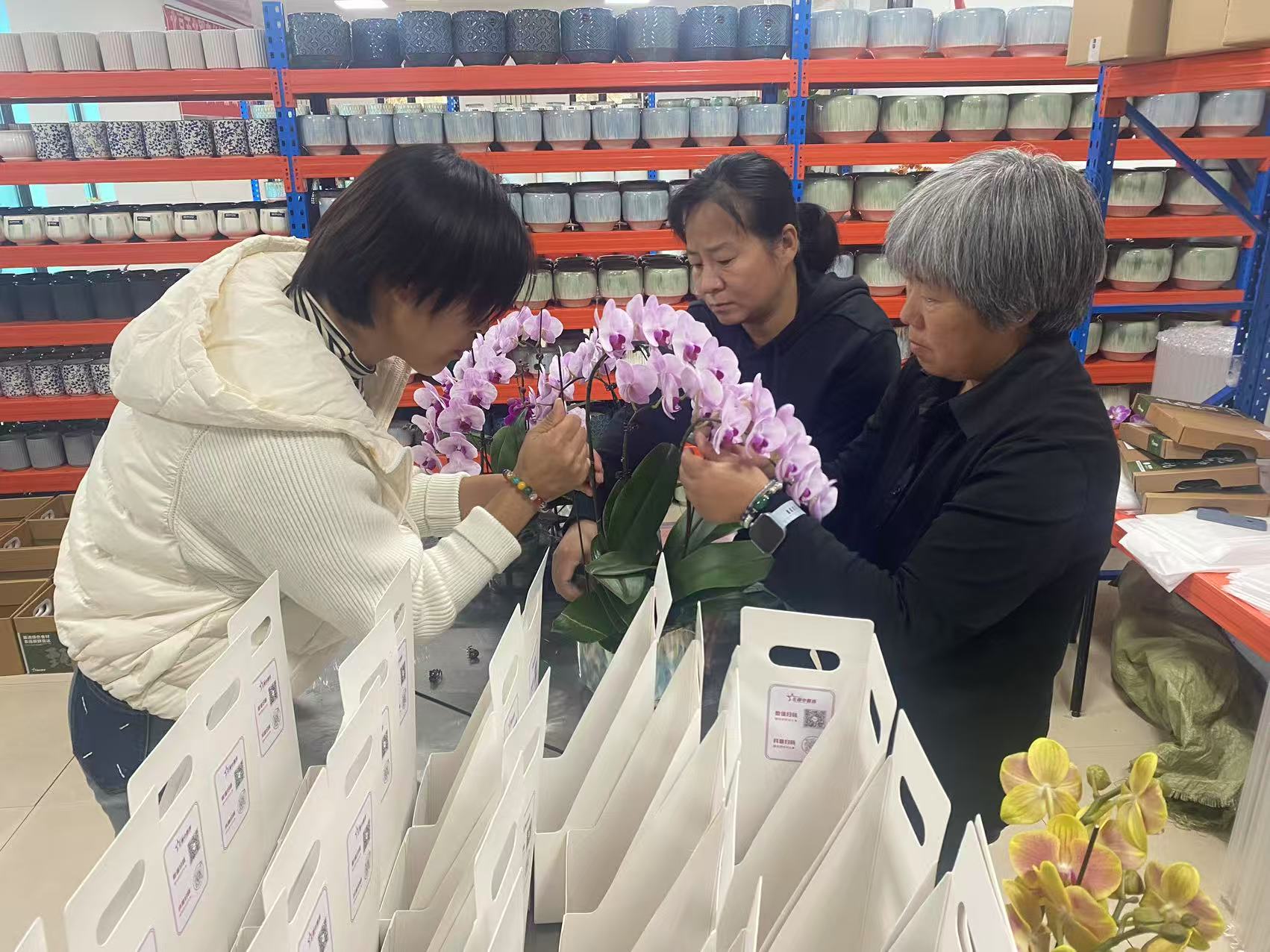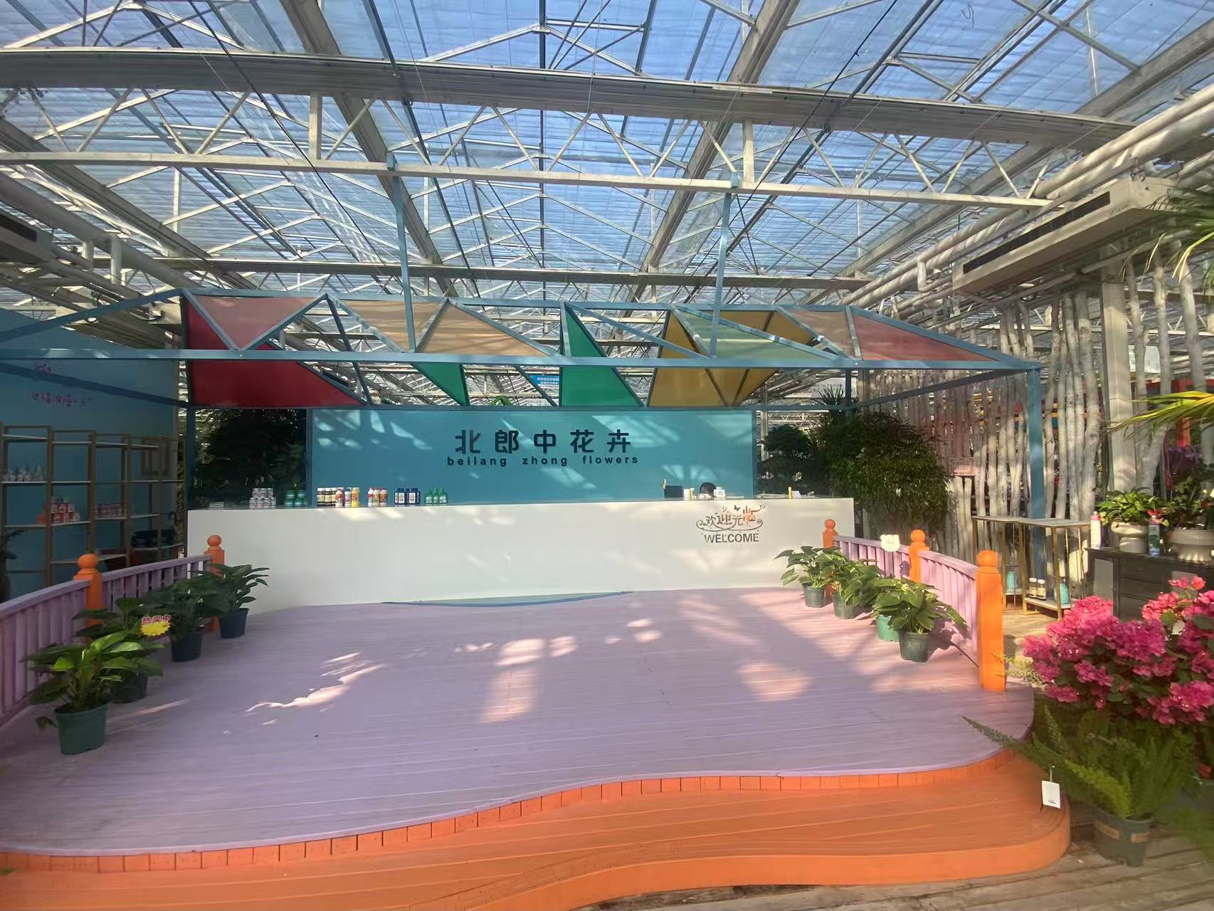 走進北郎中花卉展銷大廳,工人們正嫺熟地為顧客選購的花卉進行包裝。秋日的陽光灑在玻璃屋頂上,色彩斑斕的蝴蝶蘭、三角梅、君子蘭、紅掌……各色花卉爭奇鬥艷,宛如打翻了的調色盤,將這個京郊村莊裝點得生機盎然。