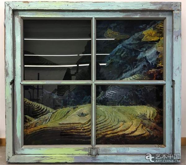 青年藝術家李青善用窗框為元素構建自己的作品,本次展覽他帶來了《霓虹新聞·一億粒米》。舊窗框後是片片梯田,夜空中不斷閃現出霓虹燈字“一名中國教師在家庭作業中讓學生數出一億粒米”。這個作品啟示我們在城市生活中,糧食是具體的,又尤為抽象,抽象為一個數字、一個資訊。