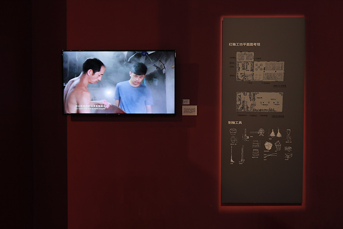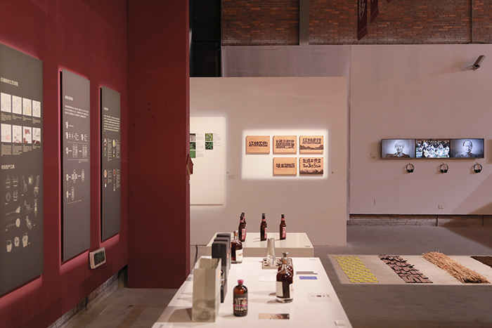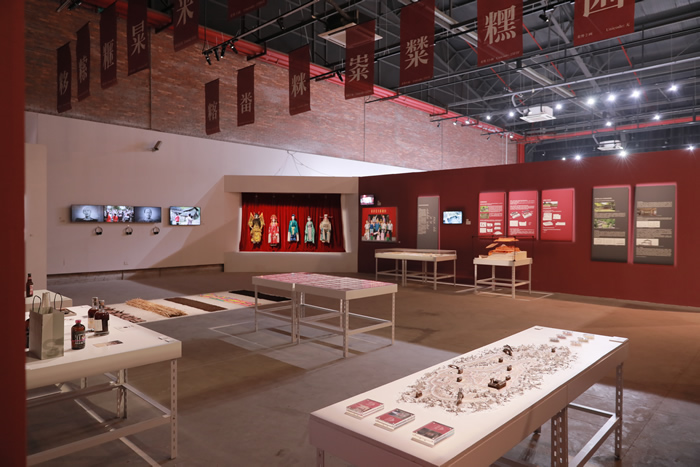 紅粬是我國黃酒釀造的一種特殊粬種,烏衣紅粬以大米為原料,由紅粬霉、黑粬霉和酵母共生製成的粬子。在展覽中詳細介紹了紅粬的浸泡、蒸煮、攤勻、接種、養花、過水、站窖、烘曬八道製作工序,以及圍繞紅粬産生的各種紅粬食物以及當地特色的紅粬啤酒。