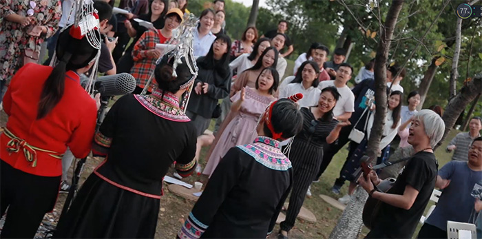 影像《尋謠活動現場》視頻截圖,小河與畬族村民同唱《放牛謠》 攝製:張鑫 影像提供:左靖工作室