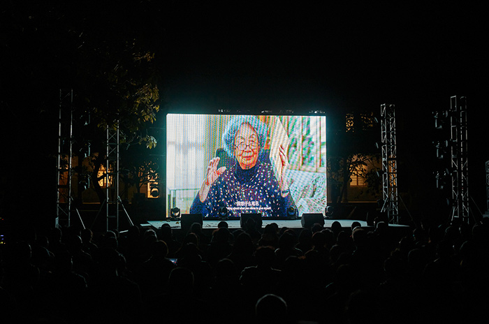 10月31日晚上6點,文學紀錄片《掬水月在手》進行了第一次的露天放映。《掬水月在手》講述了當代文學家、教育家葉嘉瑩先生的傳奇人生。在大南坡這樣的特殊場地放映該紀錄片是對葉嘉瑩先生精神的傳遞,在鄉間的一草一木中,感受傳統中國的古典氣韻。大家一起觀賞、聆聽,感受詩人的傳奇人生與古詩詞之美。