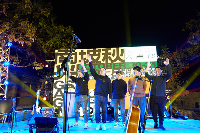 晚上7點半,“林泉新聲:秋興音樂會”在絢麗的燈光中開啟。第一場表演的音樂人是李帶菓和老丹(奔波兒灞和灞波兒奔),他們用古靈精怪的古箏和飄飄欲仙的笛子演奏出變幻莫測的音樂,音符在夜晚中飄蕩,清脆有力又神秘。第二場表演的音樂人是張瑋瑋、郭龍和他們的樂隊。這場無比熱鬧的音樂表演是當日的尾聲,在這個深秋的寒冷夜晚,當代音樂與傳統村落的碰撞,大家都被這樣的激情所感染,一起歡呼跳躍。