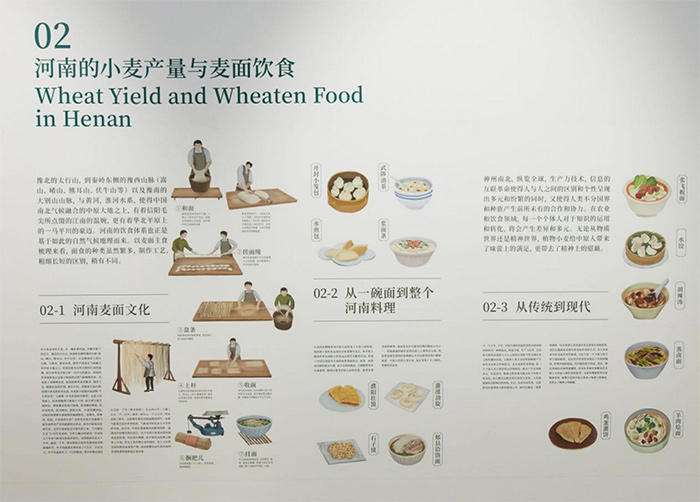 “作物”單元是對小麥種植與河南麥麵的歷史梳理。小麥是修武縣最重要、最優質的經濟作物,也是中原人民飲食中的主角。“世界麥麵與中原鄉土”單元探討了小麥歷史對人類文明演化的影響及其與亞洲、世界的關係。