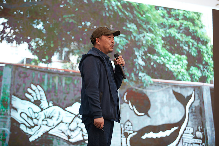 大南坡計劃發起人左靖在“南坡秋興”開幕式現場致辭 攝影:朱銳