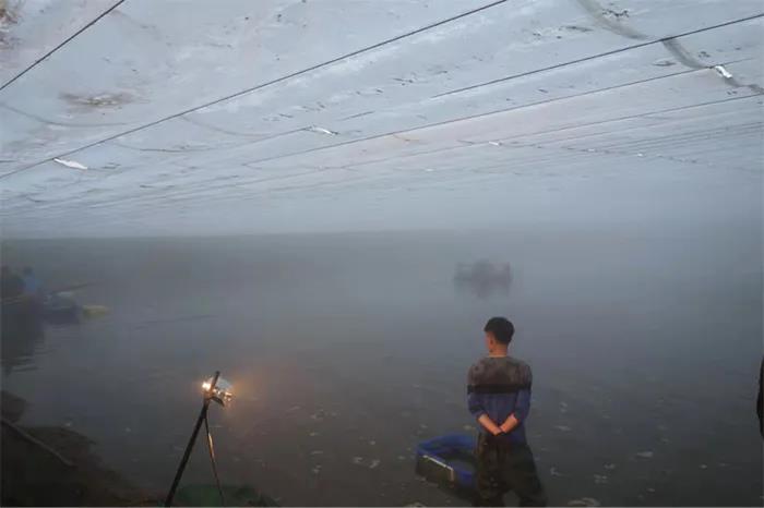 冬季被大棚所覆蓋的魚塘,早晨養殖戶正在捕撈羅氏蝦。攝影 :徐坦 2020年