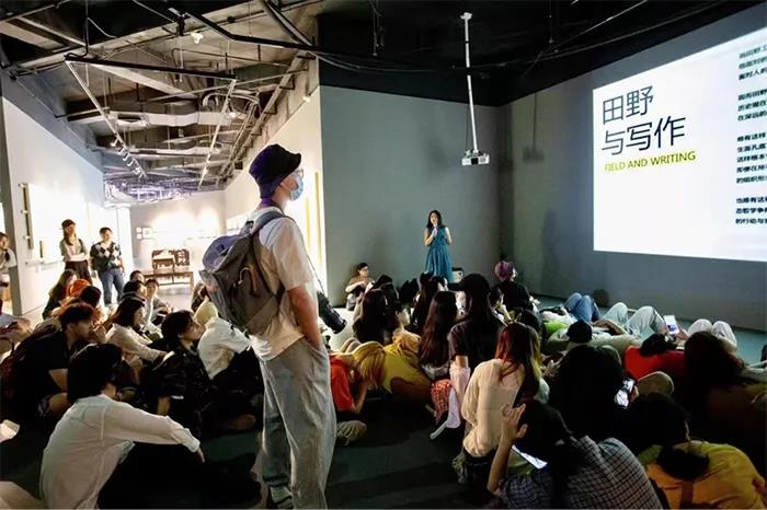 青雲文社與廣州美院跨媒體學院合作在順德開展的社會實踐課程,圖為浙江大學百人計劃學者給大家分享青雲在順德的一些實踐 。