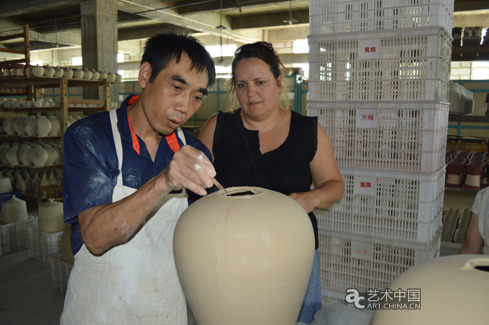 荷蘭藝術家Nicole Donkers在與陶器工作人員交流