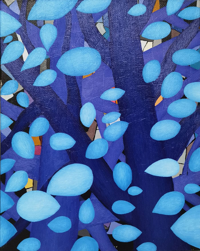 謝山的繪畫靈感來源於生活中的所見所感,來自家鄉的記憶。他喜歡畫家鄉的風景,喜歡畫樹林,也喜歡將自己看到的加上想像構思成畫面。謝山雖非科班出生,卻有著藝術家那份細膩和敏感,他的作品最動人之處洽是真誠。