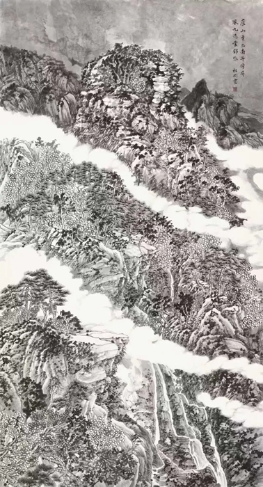 本展呈六十余件佳構,皆承筆墨雅趣,寄赤子熱忱。寫廬山千仞巍峨,繪長江萬里之奔流,繪鄱湖拍岸之壯闊,傳石鐘清越之靈秀,皆凝于尺素。山江激蕩處,恍若可聞自然清音、文脈遠響、時代共鳴——斯為“山江皆響”深意所在。