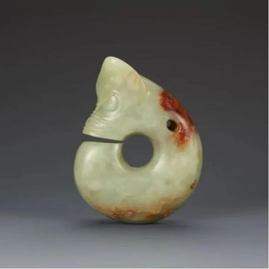 玉勾雲形器,新石器時代紅山文化晚期,1994年遼寧朝陽牛河梁遺址出土,遼寧省文物考古研究院藏