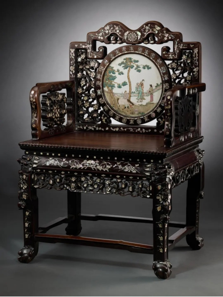 黑檀嵌螺鈿扶手椅,19世紀末或20世紀初,新加坡亞洲文明博物館藏