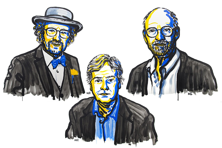 2017年度諾貝爾生理學或醫學獎得主Jeffrey Hall、Michael Rosbash和Michael Young,圖片來源:Current Exchange