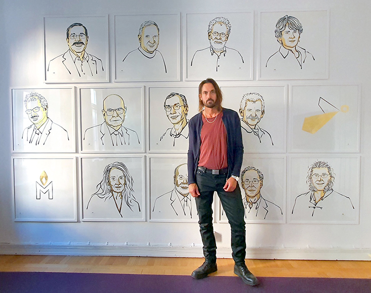 畫像取代照片,由此做到了視覺風格的統一,同時兼具藝術表達:以卡通或現代藝術風格呈現,突出了獲獎者的人文精神,與普通嚴肅照片的刻板印象形成了鮮明反差。同時得益於尼克拉斯的精湛畫技,寥寥數筆,就凸顯出了各獎項得主專業與性格的差異,而且尼克拉斯還時不時在畫作中融入一些小彩蛋,增加了趣味性。