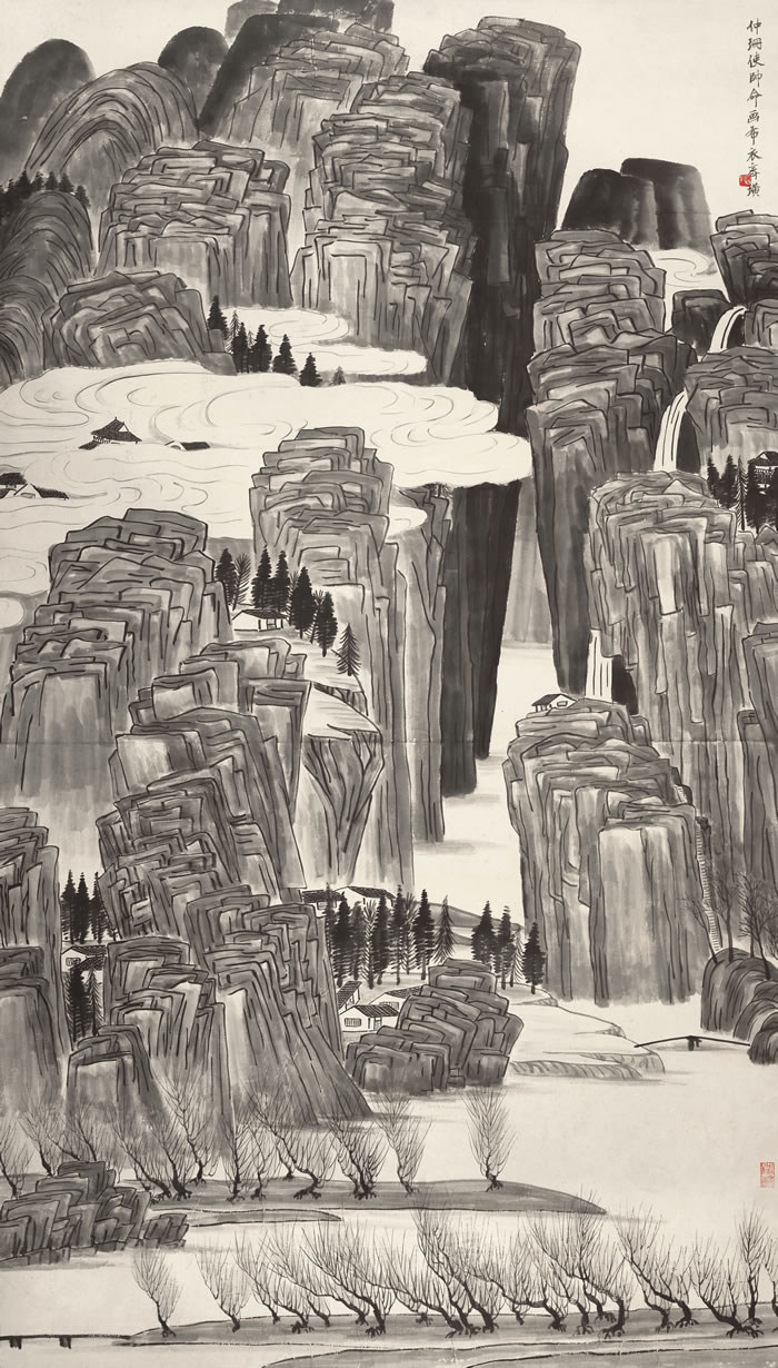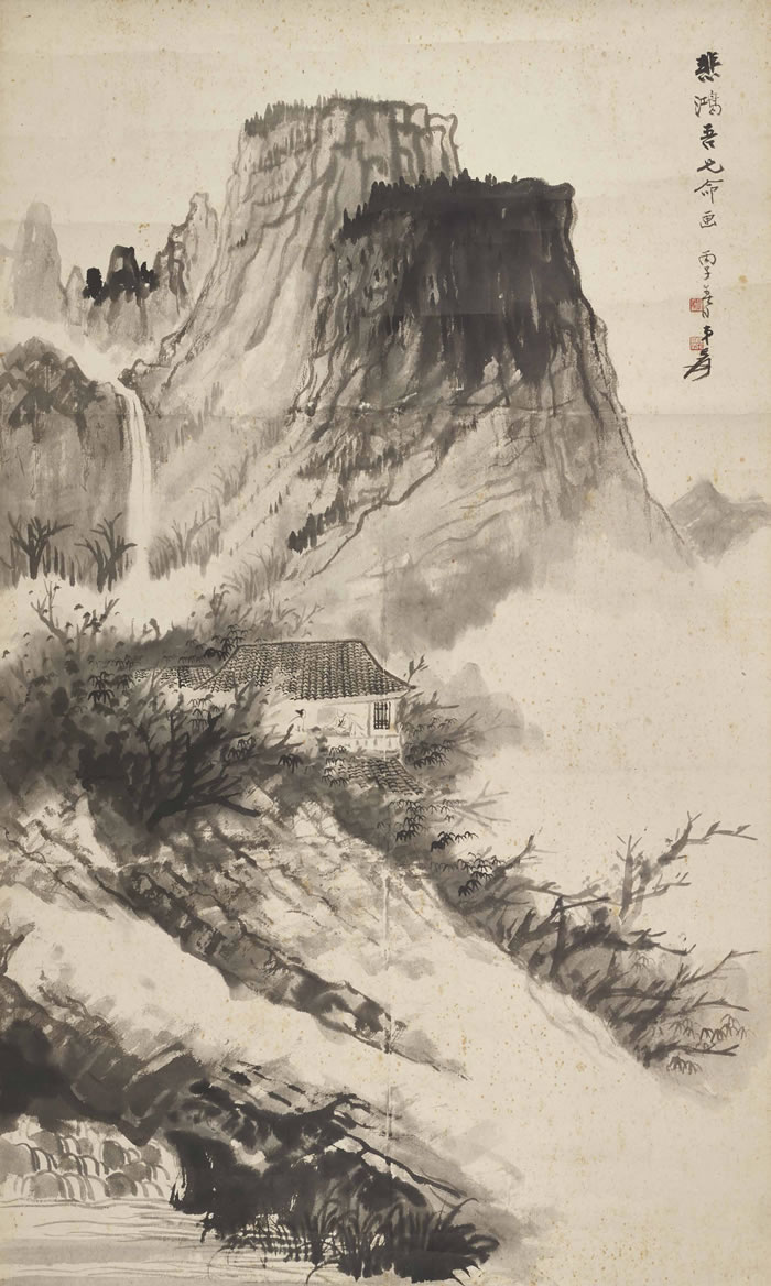 張大千 致徐悲鴻深山幽居 ,鏡心 水墨紙本,丙子(1936年)作 ,130.5×78 cm,約9.2平尺