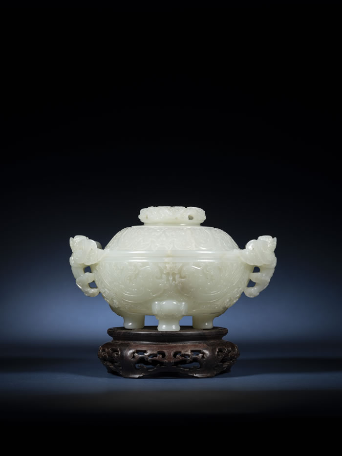 清乾隆白玉龍鳳紋螭龍耳三足爐 21×16×12.3cm