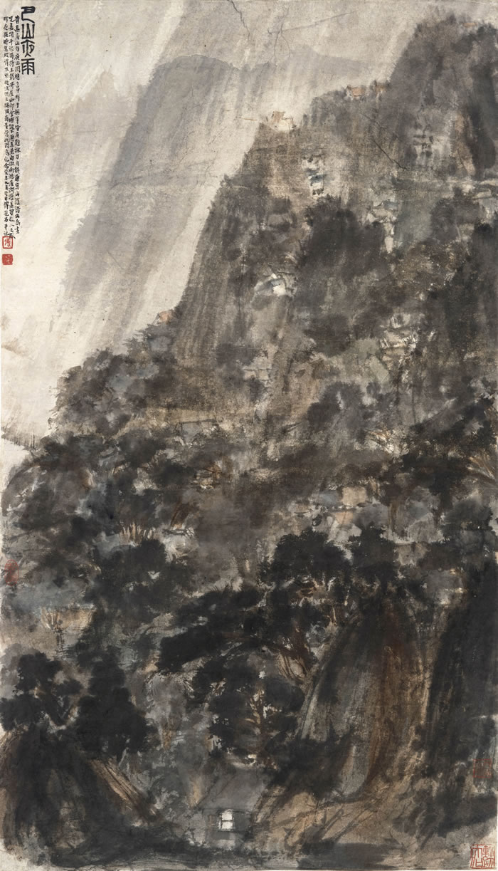 傅抱石 巴山夜雨,立軸 設色紙本,癸未(1943年)作,105.5×60 cm,約5.7平尺