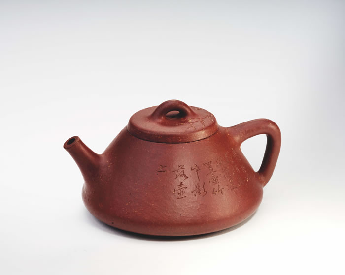 清嘉道 瞿子冶銘書畫吉安制石壺子繁款心款紫砂石瓢壺,W14.7cm
