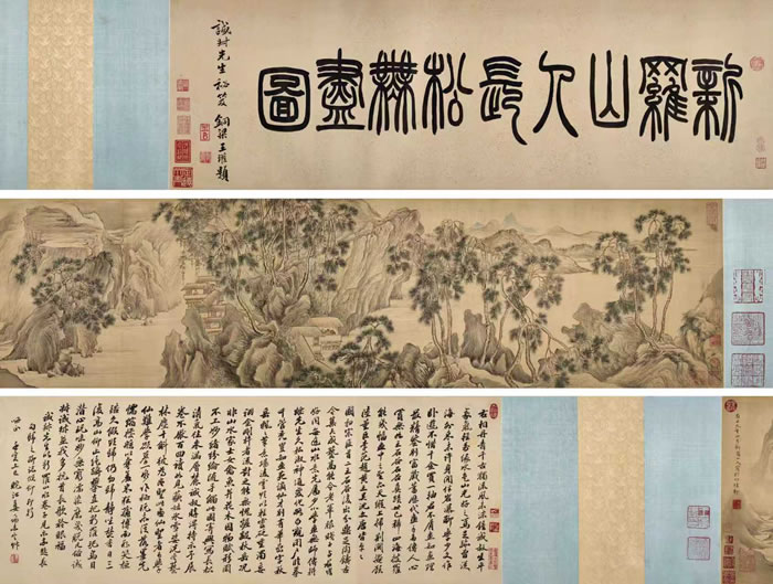 華喦(1682~1756) 萬松無盡圖,手卷 設色絹本,雍正九年(1731)作,引首:33×105 cm,畫:33×134.5 cm,跋:33×87.5 cm