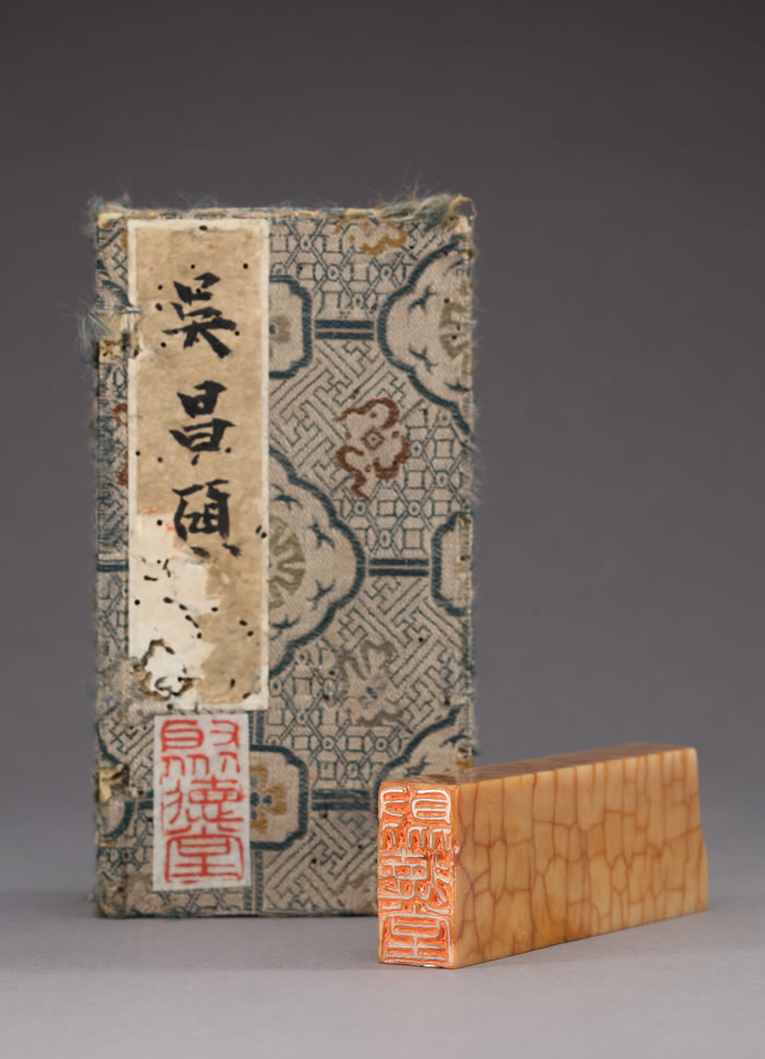 吳昌碩刻 “聚德堂”壽山石印章 印文:聚德堂,邊款:缶廬。 3.3×1.6×9.9cm