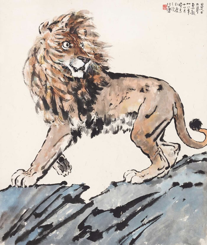 徐悲鴻 雄獅,鏡心 設色紙本,1939年作,99×84 cm,約7.5平尺