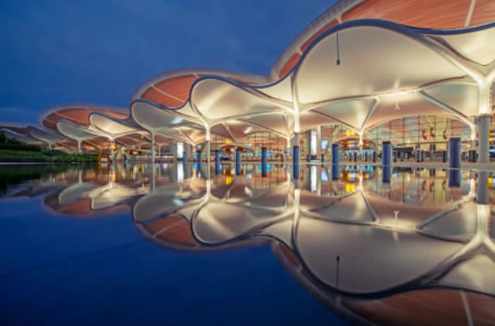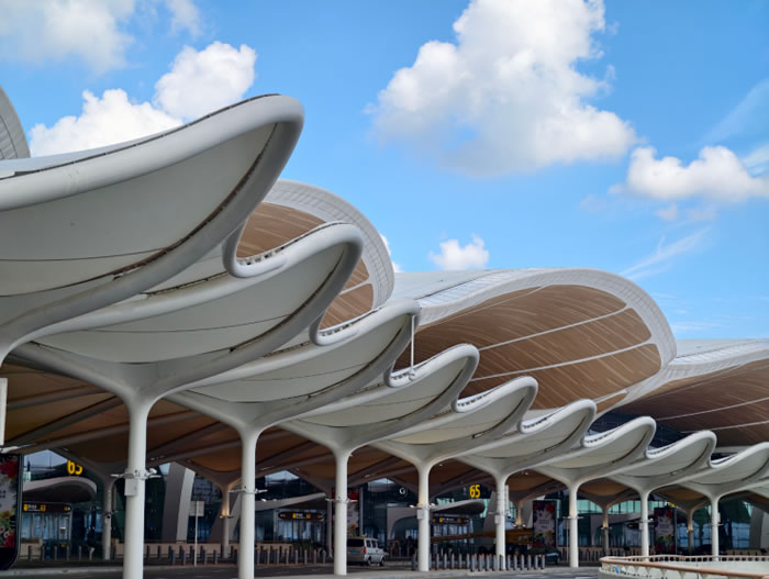 廣州白雲國際機場 T3 航廈以 “羊城花冠” 為設計意象,融入 “雲山珠水”“花城” 等城市特色,與綜合交通中心實現空鐵無縫 “零換乘”。隨著 T3 與第五跑道啟用,白雲機場成為國內首個五跑道航空樞紐,近期年旅客吞吐量達 1.2 億人次,成為粵港澳大灣區多元文化交融互鑒的重要樞紐,有力推動區域文化協同發展與創新傳承。