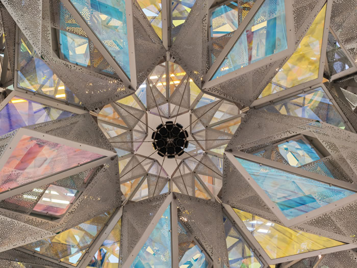 始終致力於探索自然、感知與空間微妙聯結的埃利亞松,將他標誌性的跨學科創作方式融入這件作品。他將木棉花態與東方五行智慧,藏進一個發光的十二面體中,構建出這座宛如“光之萬花筒”的詩意現場。