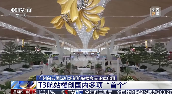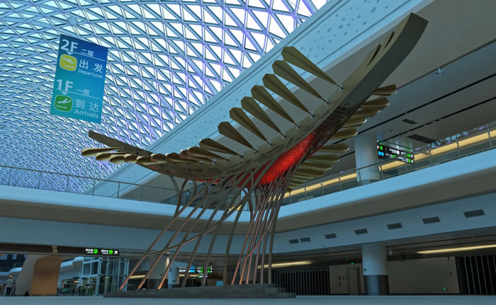 由中央美術學院黃建成教授團隊總策劃,廣州美術學院集美公司與中央美術學院聯合實施打造的廣州白雲國際機場T3航廈公共藝術體系,近日正式投運亮相。