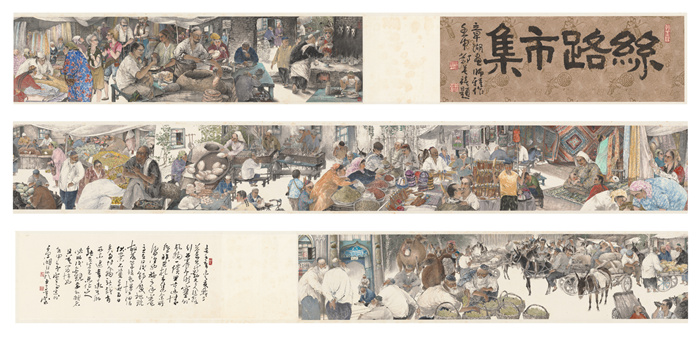 林章湖 絲路市集 24×532cm(畫心:24×405cm)紙本水墨設色 1992 私人收藏