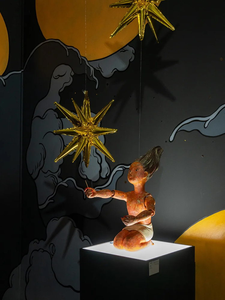 2025年9月20日, “神乎其神”文那大型個展于麓湖A4X藝術中心正式向公眾開放。本次展覽通過十三個主題單元,系統梳理了文那十餘年來的創作脈絡,從早期插畫,到壁畫創作的突破,再到近年來的雕塑與空間裝置拓展,全面呈現了藝術家的藝術演變,引領觀眾踏入一個現實與想像交織的“神乎其神”之境。