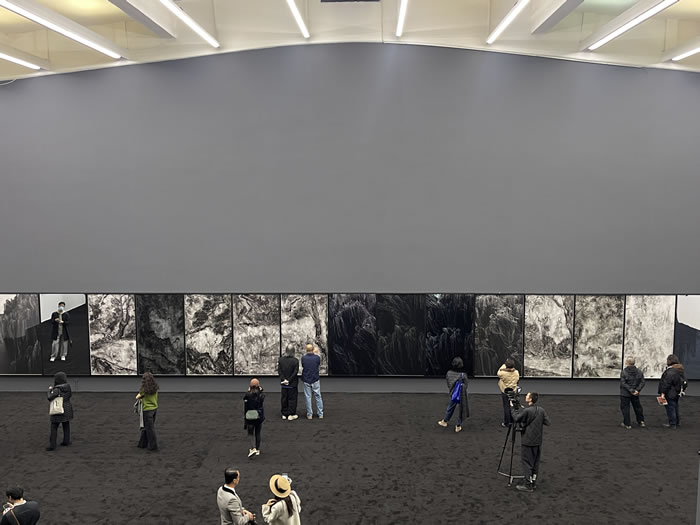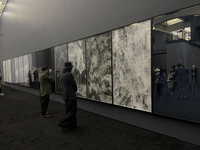 展覽空間以“迷宮”“城樓”“廣場”等多種象徵性空間形態為結構,配以黑白與多層次灰色調,形成既具秩序感又充滿詩意的場域。此外,藝術家拒絕設定單一的觀展路線,通過多通道與多向的空間佈局,讓觀眾在展廳中或徘徊、或折返,甚至迷失方向,仿佛沒有固定的起點與終點。光線的運用強化了這種錯位的體驗,使影像敘事與空間敘事共同指向一種模糊而多維的身體感知。
