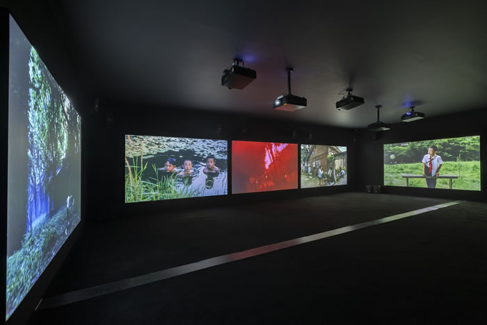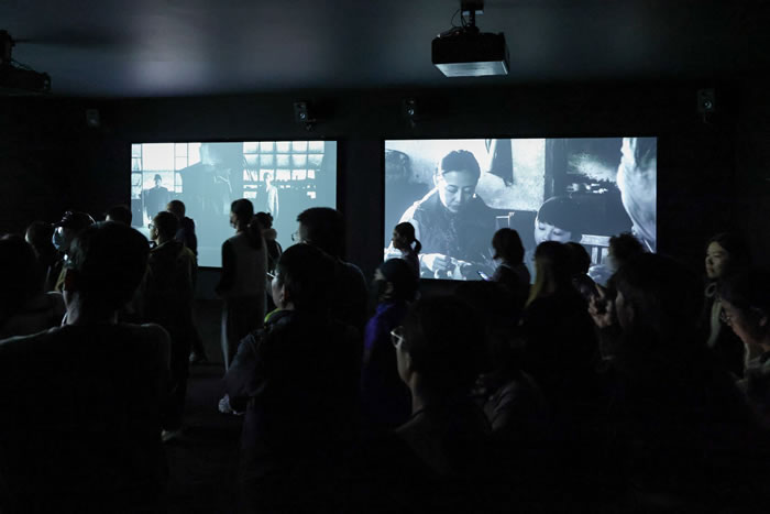 《香河》既是一次關於成長與鄉愁的精神重訪,也是一場對時間本身的凝視與見證。15塊螢幕錯落分佈于9個彼此嵌套且相互連接的空間內,構成一座記憶的迷宮;觀眾穿行其間,行走本身便成為時間展開的方式,也使他們成為影像敘事的參與者。此外,本次展覽特別呈現《香河》的拍攝紀錄片,使觀眾得以直觀感受藝術家如何將個人記憶轉化為觸及人類共通情感的影像敘事。作為楊福東長期構思並持續推進的“圖書館電影計劃”的開篇,《香河》是進入楊福東關於個人精神生活這一宏大命題之探索的入口。不同的影像與作品歸類其中,既構成了一部極度個人的藏書目錄,同時開放地靜待觀眾閱讀。