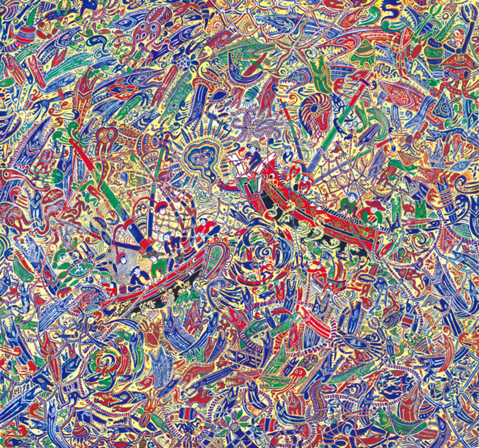 2025年,舟山漁民畫第三次相約北京,以“海上的鄉土世界”為主題,呈現一場跨越近十年的藝術盛宴。中國鄉土藝術作為記錄鄉村變遷的重要藝術形態,以其豐富而多元的在地特徵構建社會主義新農村的文化圖景。舟山漁民畫藝術,正是改革開放以來浙江乃至全國鄉土藝術發展的樣本個案。它既承載著波瀾壯闊的海洋文化的地域性敘事,又煥發著時代景象與民間文化發展的內在生機,在政策支援與藝術機制的雙重驅動下,成為鄉土藝術融匯中國鄉村文化振興進程中富有多元價值的藝術現象。