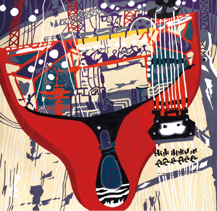 新曲篇以“海韻新章”為歌,20件作品記錄著新區發展和海島生活的日新月異。跨海大橋如虹飛躍,中國(浙江)自由貿易試驗區、大宗商品資源配置樞紐等國家戰略相繼落地。這些充滿時代印記的藝術表達,將漁民畫從東海地域文化的活態載體,昇華為記錄鄉村振興、海洋強國戰略的視覺檔案。