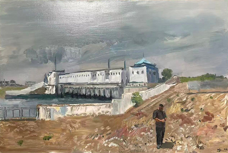 “現場的敘事”是張路江的工作方法。現場如同包裹著他的巨大的資訊場域,在這種場域中,他將看到的現實甄別莘取,轉化為作品的主題和敘事的語言,因此,在觀看張路江作品的時候,除了眼睛能識別出的圖像,還能感受到碼頭的腥鮮味、海鷗的鳴叫與海浪聲的交錯、炒茶房裏的高溫與茶香、山間泥土的芬芳,畫面中的男男女女似曾相識以及農民對土地的依戀。當然遠遠不止于這些,“山•海•人”構成了張路江的閩緣。這種方式有別於對景寫生。他始終堅信藝術家的“在場”與腳下土地的“現場”共同構成了他藝術創作不可分割的經驗場。