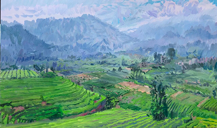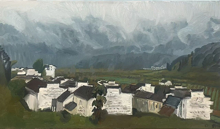 20多年來,張路江多次深入福建生活與創作,以”在場者”的視角見證了福建進入新世紀、走向新時代的變化。本次展覽中的作品並不僅僅是福建的再現圖景,而是一種緣于閩山閩水、從土地中生發、從經驗中沉澱、從心境中昇華而成的時代之景與精神之象。在這裡,山、海為界,人為中軸,一切景象最終回到對生活本身的理解與體認。張路江用畫筆為我們打開了一條重新抵達現實、抵達他者、抵達自我的路徑——這便是“山•海•人”的真正意義所在。