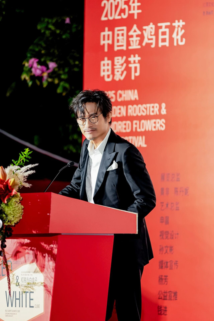 展覽開幕儀式由佟凡、耿楊擔任主持。在致辭環節,中國電影基金會理事長、國家廣電總局原副局長張丕民表示,“藝海星辰”電影人藝術展以電影人為焦點,通過當代藝術的語言再度譜寫電影與美術之間的對話,是金雞百花電影節不斷向縱深拓展的文化平臺。他指出,在中國電影走過120年曆程的當下,以人民為中心的創作理念需要更多元的表達形式與公共空間,“紅毯”與“白盒子”的結合,為電影人打開了一個在影像之外持續延展創作能量的新場域。