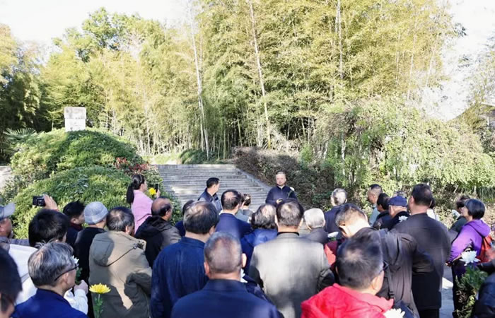 與會詩人、藝術家及各界嘉賓向趙孟頫管道升陵墓獻花致敬(主辦方供圖)