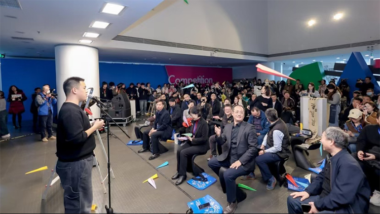 在開幕式上,由天津美術學院師生團隊傾力打造的跨界展演作品《造翅膀的人》驚艷亮相。該作品聚焦“自然科學探索、機械構造美學與人機共生”等前沿議題,創新性地採用了快閃工作坊與演講劇場相結合的展演形式。來自不同專業背景的學子以多元媒介為語匯,現場各顯身手“造翅膀”,共同構築起一個關於“飛行”意象的先鋒實驗場域。