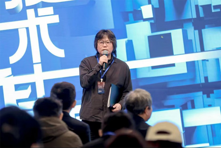 天津美術學院人工智慧藝術學院盧思屹作為青年教師代表發言,他介紹了“演算法之夢、但生活還在那裏”青年教師作品聯展。該展覽匯聚18位教師的前沿創作,旨在“新藝科”語境下探討技術與生命經驗的連接,強調技術不僅是視覺手段,更是重新提問世界的工具,展現了創作與教學相滲透的學術思考。
