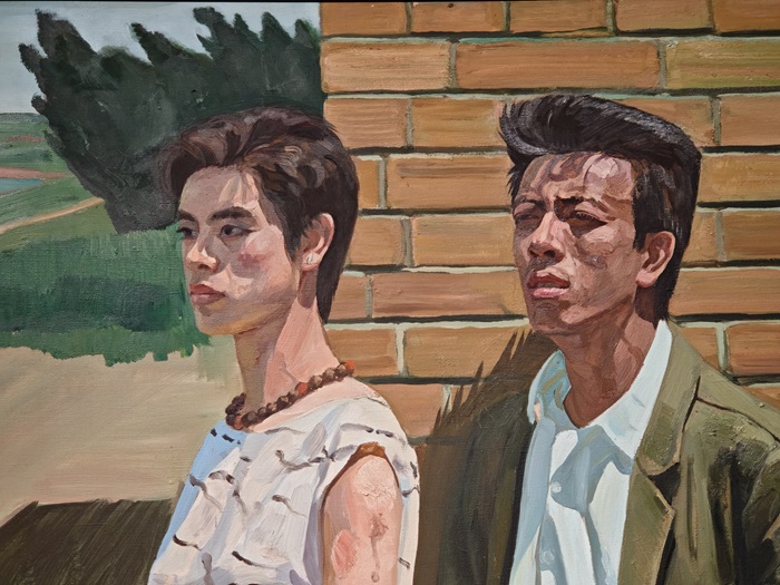 展覽開頭的第一張大型創作《自古英雄出少年》與王小帥導演的電影《十七歲的單車》有關。畫家借用電影中的人物和場景,在畫布上重新“編導”。從某種意義上説,這幅畫集中體現了劉小東幾十年來藝術創作的底色:寫實繪畫、圖像敘事、影像、社會關切,以及對人物內心和相互關係的描繪。在一個衚同口的拐角,一邊是女生,另一邊是男生,一邊人人都有自行車而另一邊沒有。作品中展示了轉折、對立、差異、匱乏,像那部電影一樣,刻畫了少年的煩惱,回應了微妙的社會情緒。