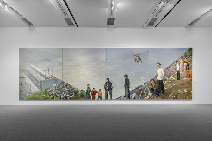 《三峽新移民》,亞麻布油畫,2004,300×1000cm ©泰康收藏“劉小東:河東,河西”展覽現場,泰康美術館,2025