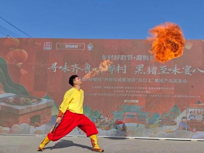 作為活動的“流量擔當”,千人大鍋宴在收官日依舊排起百米長龍。濟南風口上文旅公司現場展示黑豬肉從切割、腌制到燉煮的精湛技藝,地道“咕嘟黑豬肉”成為遊客必嘗之選。