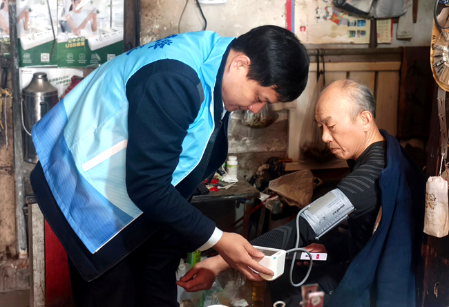 考慮到老舊城區老年居民較多,活動特別增設了免費測量血壓服務,志願者耐心為居民測量血壓並記錄數據,提醒血壓異常者注意日常健康管理。同時,針對老年人使用智慧手機時遇到的軟體操作、話費查詢和詐騙識別等難題,志願者開展“手把手”教學,結合典型案例講解虛假連結、冒充親屬等常見詐騙手法,累計發放反詐宣傳手冊180余份,協助30余位居民安裝並開啟“國家反詐中心”APP預警功能,切實提升了老年群體的數字應用能力和防騙意識。