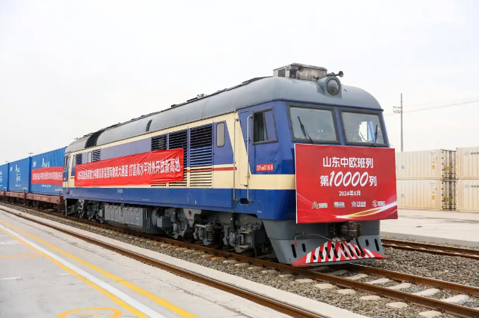 山東中歐班列從濟南董家鎮站駛出。圖片來源:新華社