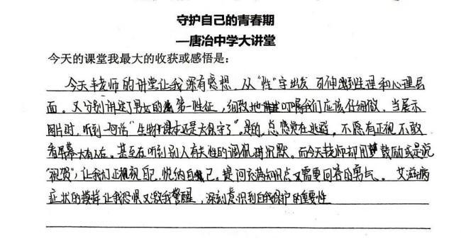 講課過程中,豐老師特意引導同學們及時記錄當下感悟,同學們卸下拘謹,在感悟紙上盡情抒發,寫下內心的真實想法與成長困惑: