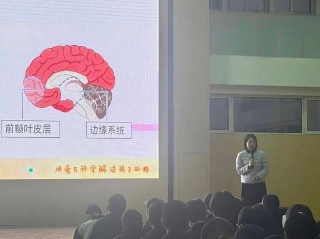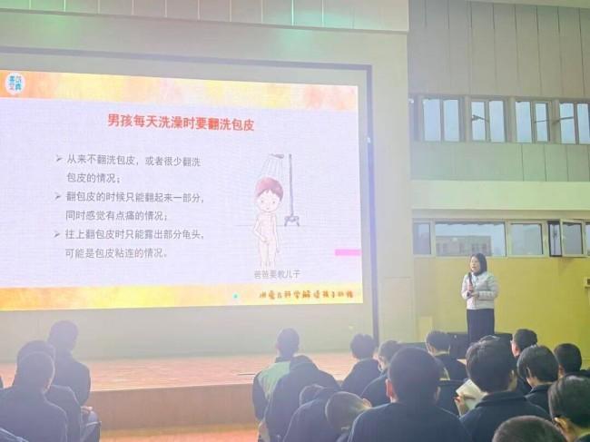 豐老師用親切的語言為同學們搭建起認識青春期的橋梁。首先帶大家認識男生女生的身體構造,並教給同學們實用可操作的日常護理方法,手把手教初二學子讀懂身體的“成長密碼”。接下來帶領同學們讀懂青春期——這是從孩童走向成熟的關鍵階段,身體與心理的變化都是生命最自然的饋贈,要接納自己的身高,要慢慢學會管理情緒。課堂上還詳細解讀了男女生青春期身體的蛻變:男生的喉結突出、聲音變粗,女生的胸部發育、月經初潮……這些都是成長的“勳章”,無需焦慮或羞恥。同時,老師還分享了情緒管理小技巧:面對莫名的煩躁、敏感或波動,可通過哭、唱歌、寫日記等方式疏解,接納情緒的多樣性。這場講解讓同學們明白,青春期的每一份變化都值得被善待,悅納自己、擁抱成長,才能自信走過這段美好的青春旅程。