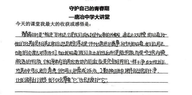 為促進學生身心健康發展,營造和諧的育人環境,幫助同學們更平穩的渡過青春期,唐冶中學的豐雪老師開展了以“守護自己的青春期”為主題的全環境立德樹人教育活動。