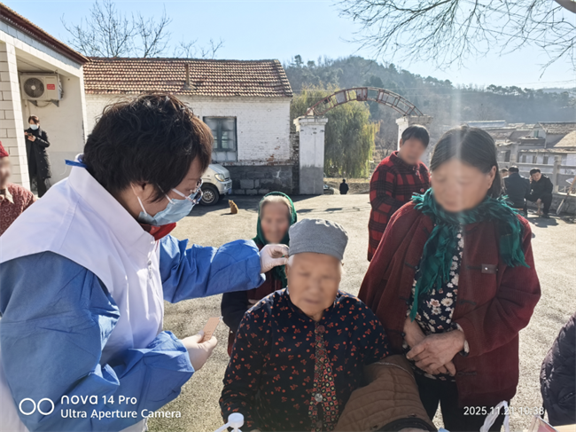 護理團隊為村民提供血壓、血糖測量、心電圖檢查及耳穴壓豆等中醫特色技術服務,讓群眾在家門口享受到三甲醫院的專業診療,真切感受到黨組織帶來的健康關懷。
